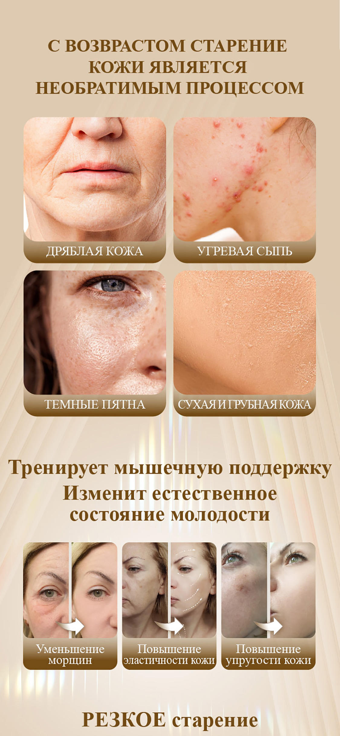 Усталая кожа, обвисание и сухость придают лицу усталый и тусклый вид. Пренебрежение ежедневным уходом ускоряет старение.