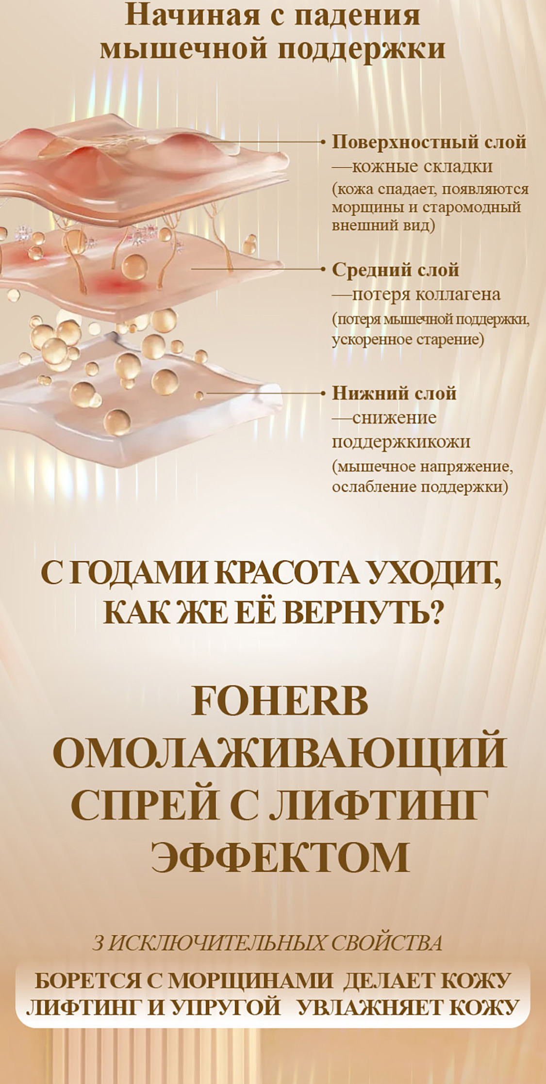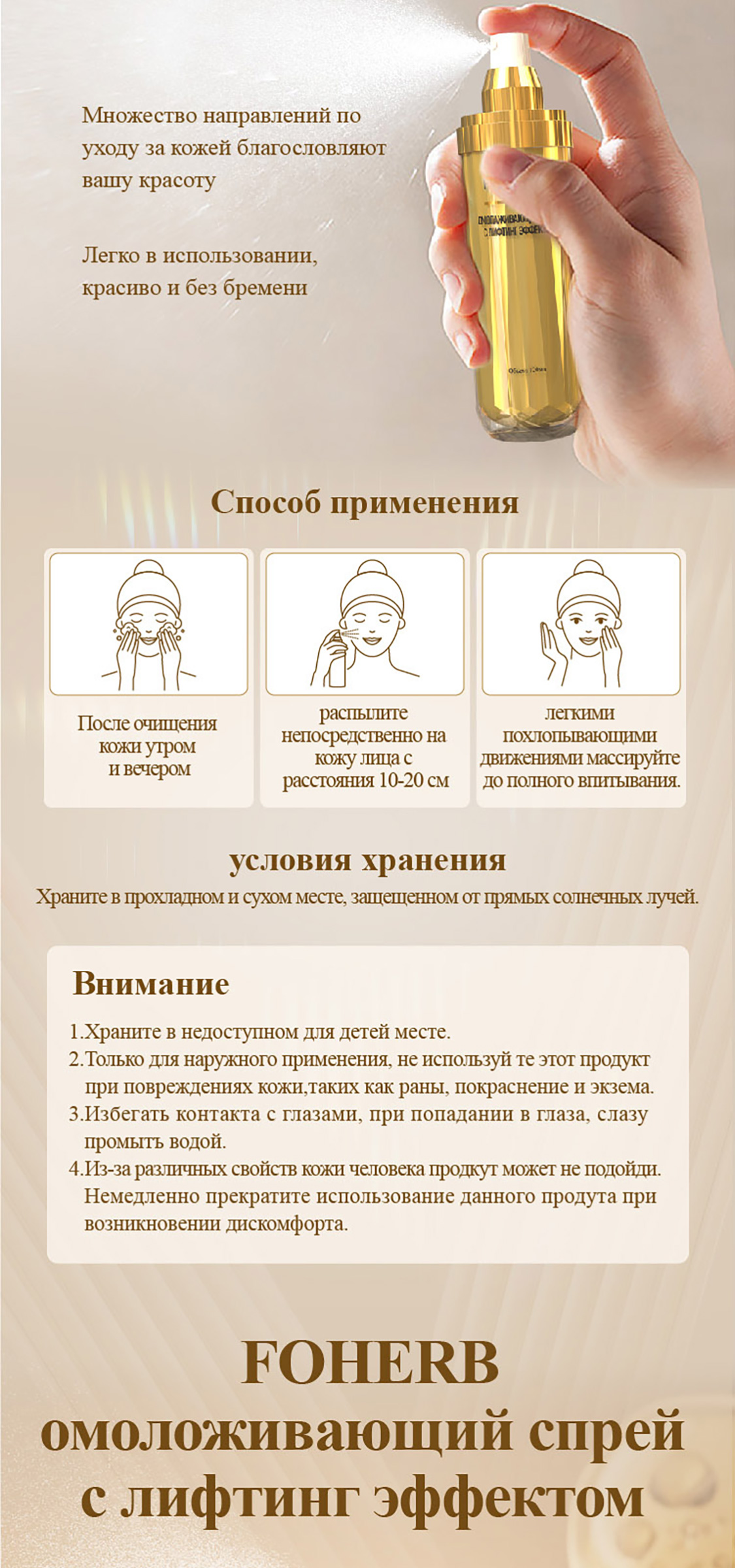 💡 Решение: Спрей против морщин FOHERB мгновенно тонизирует, увлажняет и подтягивает кожу. Секрет идеальной кожи в кармане.