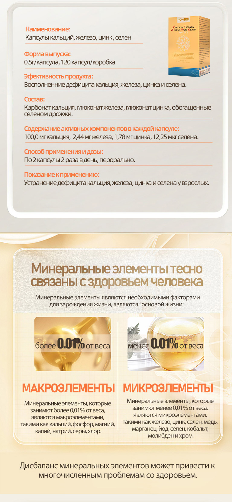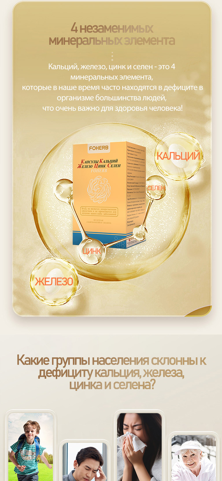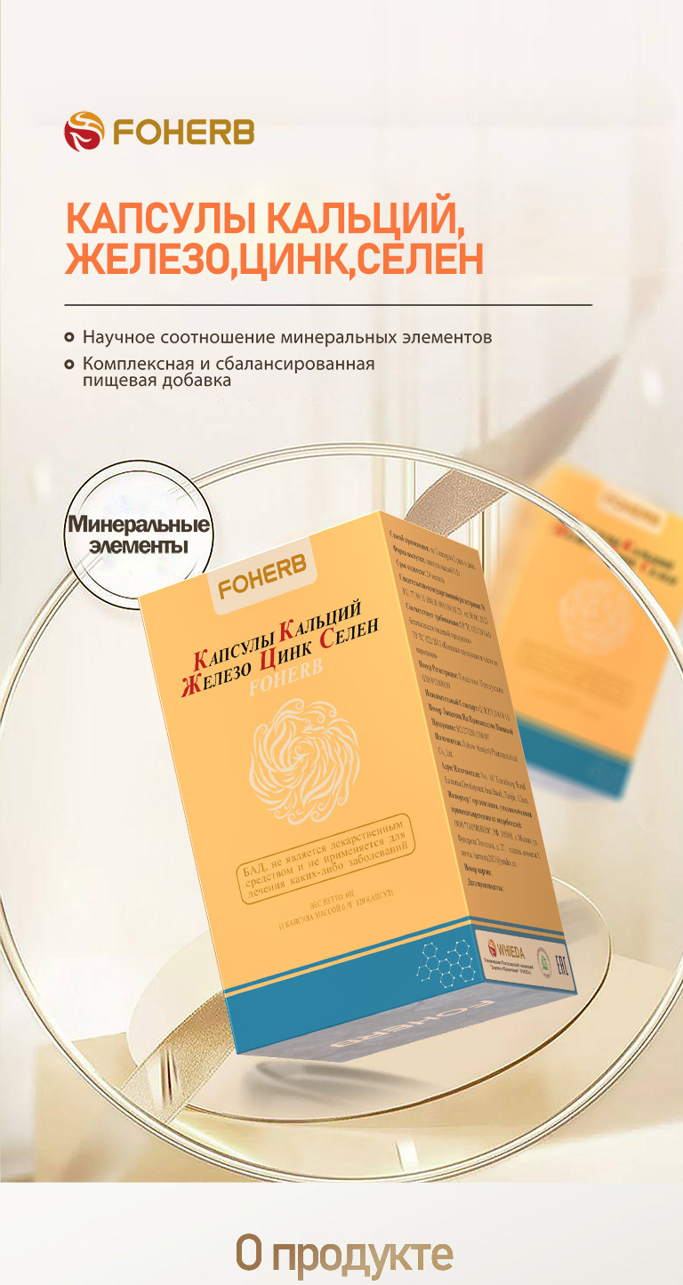 Капсулы FOHERB, содержащие кальций, железо, цинк и селен.