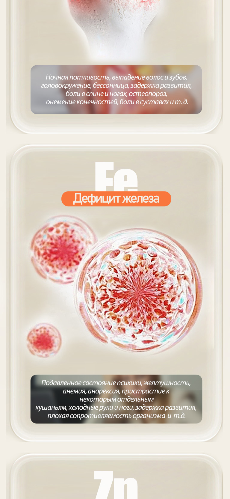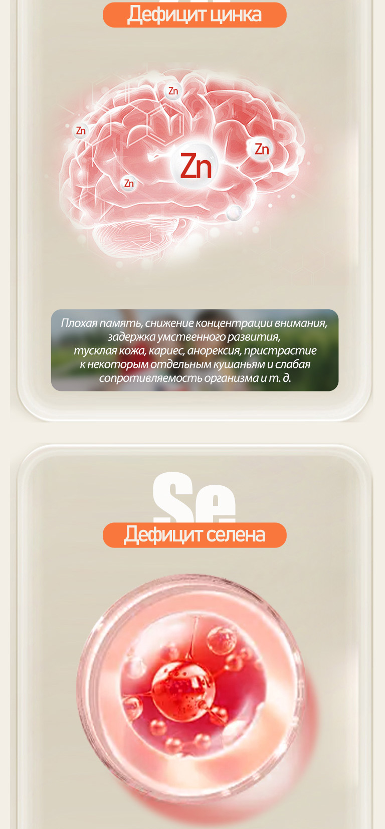Дефицит цинка: плохая память, невнимательность, тусклая кожа, кариес, плохой аппетит, плохая резистентность и т. д.